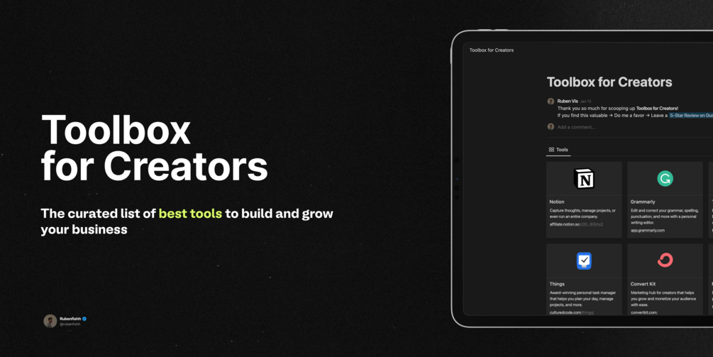 The Toolbox for Creators is a curated list of best tools to build and grow your business